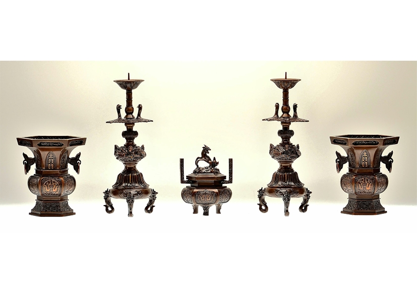 ここでご紹介するお具足は、すべてのご宗派でお使い頂けるものですが、浄土真宗の場合、お具足は正式な形がそれぞれにありますから、詳しくはお寺様か仏壇店にご相談されることをお勧めいたします。