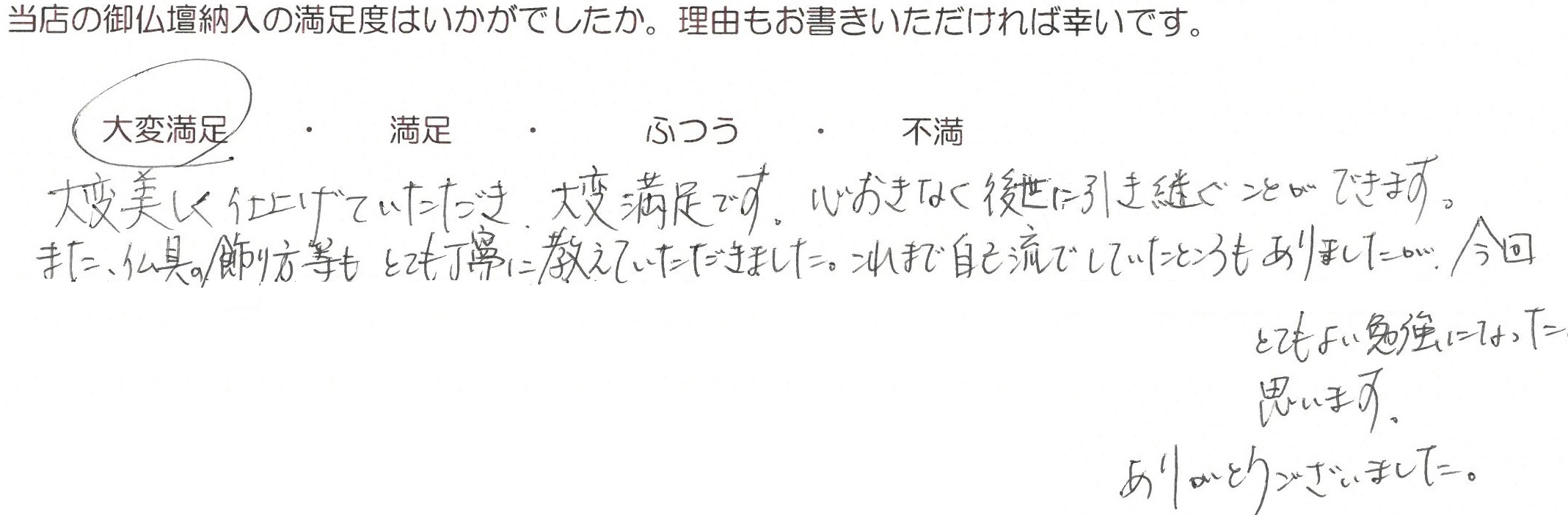 ・・このお客様は寂しいことにこの度お父様を亡くされて、ご家族で何度も何度もご来店の上このお仏壇を気に入ってお選び下さいました。