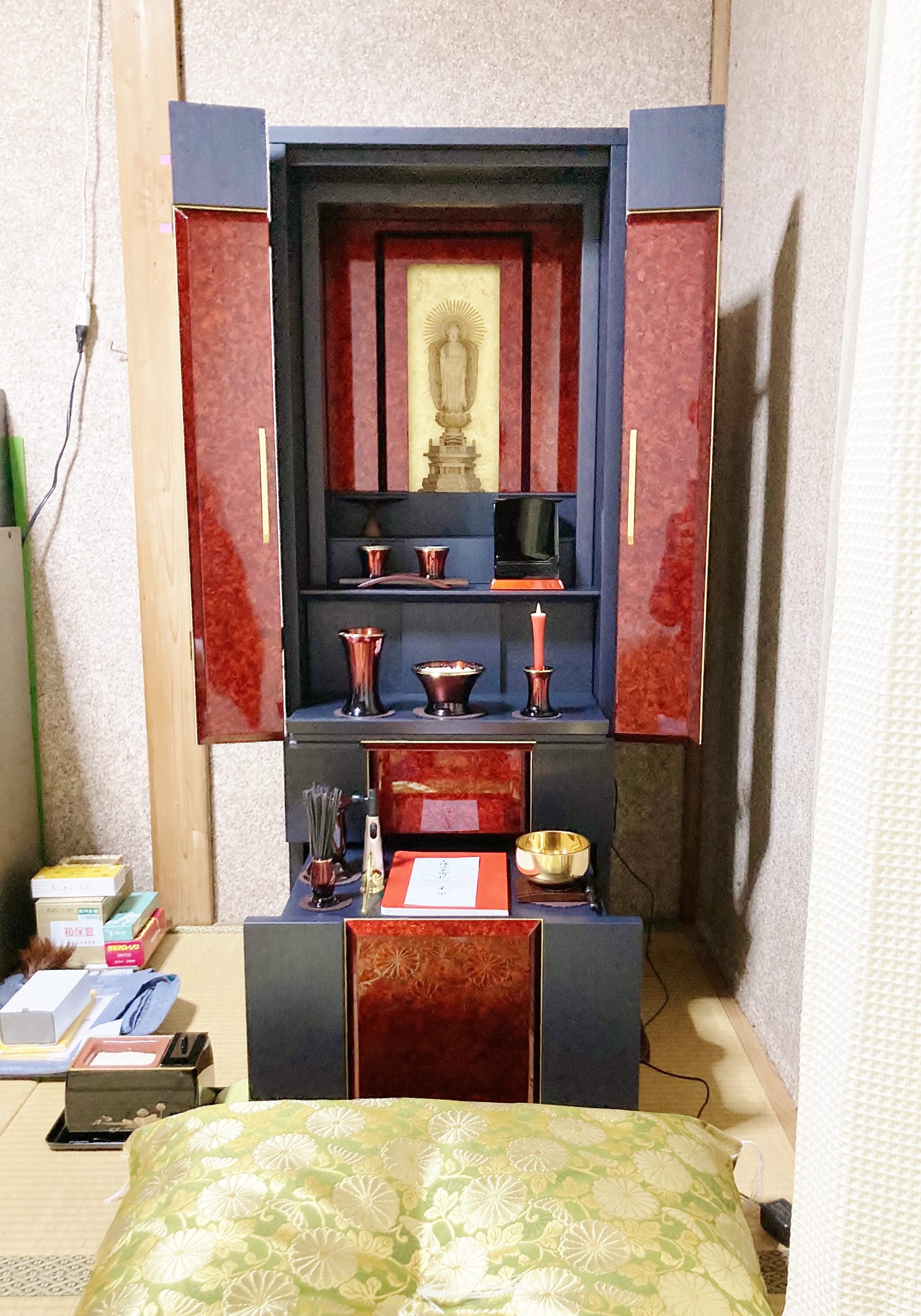 ちなみにご本尊は以前より手を合わせて頂いていたお釈迦様をメンテナンスさせて頂き、そのままおまつりいたしました。